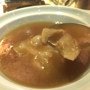 台風の影響で多くのお店が閉まりショッピングが楽しめない中、お食事はゆったりとできたので、良かったです。お天気は残念でしたが、それでも夜景の見える席で、美味しくいただきました。フカヒレスープやスライスのアワビの煮込み、小さなアワビが丸ごと乗った麺など、どれも美味しく、日本人好みのメニューがセットになっており、女性には充分な量でした。お店でお品書きを見せてくれますが、こちらで紹介されているのと少し内容が違いましたが、実際のほうが豪華に感じたので、嬉しかったです。メニュー内容が季節で変われば、また利用したいと思います。