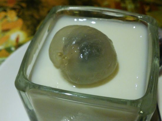 ふかひれもさることながら、アワビ煮もおいしくいただき大満足です。デザートの杏仁豆腐には日本であまり食べられない竜眼が乗っていたのもうれしかった~
