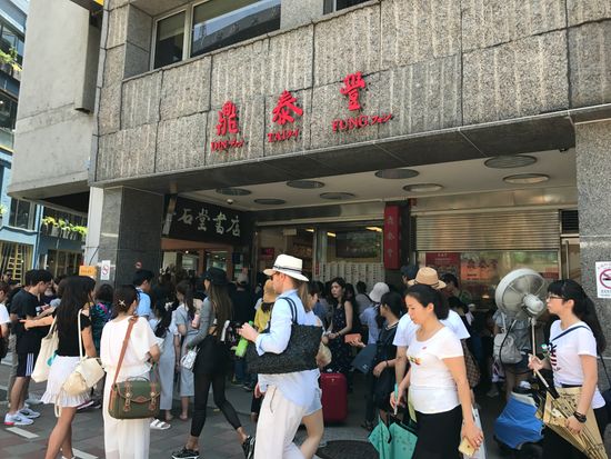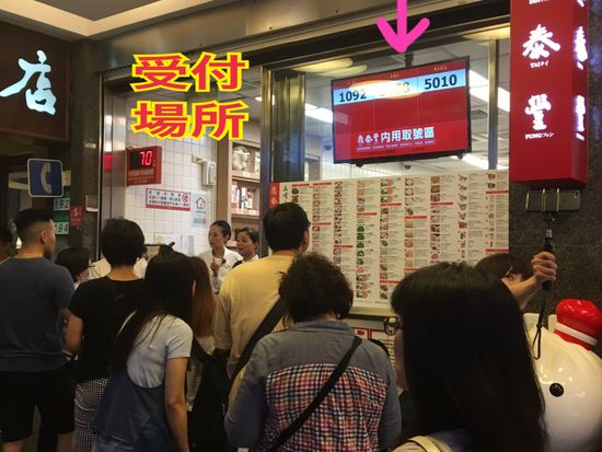 店前の歩道から溢れかえる人。電光掲示板には45分待ちの表示。そんな中でも予約をしていたおかげで10分と待たずに入店することが出来ました。厳しい暑さの中、観光で歩き疲れていたこともあり、すぐに入店できて涼めたのは嬉しかったですし、なによりゆっくりとお腹いっぱい小籠包を堪能することができました。