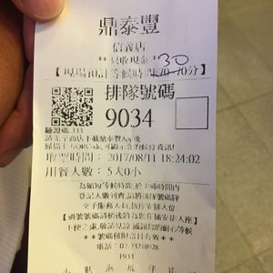 台風の影響で飛行機の到着が遅れ、ホテルに着いたのが夜の21:00過ぎ。予約は18:30だった為、その日はあきらめて翌日JTB台湾に電話をし、クーポンが利用できるか交渉しました。 航空会社発行の遅着証明も入手していたので、そのクーポンのまま利用OK! 一般の方々は50分待ちの状態でしたが、約15分ほどで入店。 苦労した分とてもおいしく味わう事ができました。JTB台湾もお店の方の対応にもとても満足しています。 また台湾に行く機会があれば是非利用します!