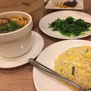 思っていたほど行列はできていませんでしたが10分ほどで入店できました。きれいな店内にお客さんがびっしり。そして。。。おいしかった。さすが有名店。店内もきれいで店員さんも丁寧です。名物料理がすべて含まれており大満足。最後は食べきれず、テイクアウトにしてもらいました。ホテルで見てびっくり。使い捨てのれんげ、はしがセットされておりここでまた感動しました。このプランはお得です