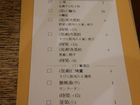 メニューはセットメニューで、小籠包を中心にした蒸し物が何種類かと、酸辣湯とチャーハン、青菜炒めとデザートでした。料理はおいしかったのですが、小籠包が蒸したてではなく、少し覚めていたのが残念でした。入店タイミングや蒸しのタイミングなどもあるのかもしれません。