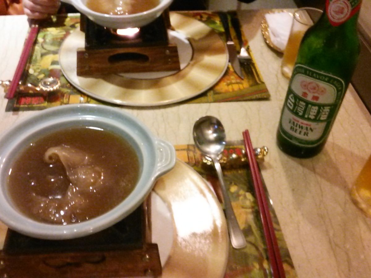 台北で元旦を迎え、その晩に正福緑でディナーをごちそうになりました。フカヒレコースを頼んでおいたので30分早く到着したのですが、すんありテーブルにつけました。元旦から店内は日本人の予約客で満席状態でした。さすが有名店はちがうなと思いました。フカヒレの尾のスープではじまりロブスター、あわびと続き料理が出てきました。とても美味しくいただきました。この味付けは日本人好みだと思います。次に出てきたのが、パパイアのグラタンでとても珍しいと同時に美味しかったです。お店の雰囲気も良く、店員さんは日本語が上手でまた機会があれば利用したいと思います。