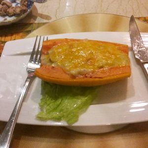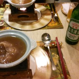 台北で元旦を迎え、その晩に正福緑でディナーをごちそうになりました。フカヒレコースを頼んでおいたので30分早く到着したのですが、すんありテーブルにつけました。元旦から店内は日本人の予約客で満席状態でした。さすが有名店はちがうなと思いました。フカヒレの尾のスープではじまりロブスター、あわびと続き料理が出てきました。とても美味しくいただきました。この味付けは日本人好みだと思います。次に出てきたのが、パパイアのグラタンでとても珍しいと同時に美味しかったです。お店の雰囲気も良く、店員さんは日本語が上手でまた機会があれば利用したいと思います。
