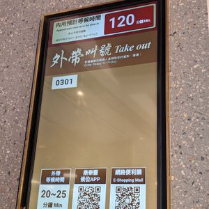 GWの週末、11時頃にお店に到着し、電光掲示板の待ち時間は70分、バウチャーを提示して示された待ち時間は20分でした。その20分で烏龍茶やパイナップルケーキを買うことができて良かったです。