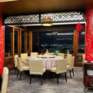 夜景見えるフロア。普通は大家族や会社のパーティなどで名物の北京ダックを1羽注文して大皿料理ですが、夫婦での観光ツアーでは出来ません。ベルトラのツアーでは大皿でなく北京ダック含めて色んな料理をコースで出して頂き堪能でした。良かったです。