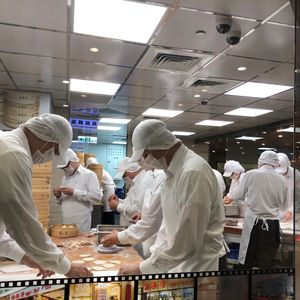 年末の土曜日で,とても混んでいることが予想されたので時間をずらして20時半ごろ鼎泰豊台北101店に行きました。しかし,長蛇の列があり110分待ちとのことでした。バウチャーを見せると,番号の印字されたレシートのようなものを渡され,40分ほどたったら来店して欲しいと言われました。実際は30分ほどで入店できました。