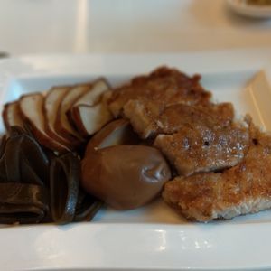 何より、量り売りで時価のメニューに慣れていないので、いくらになるか心配せずに適量の食事が出てくるのはとっても安心で便利でした。料理も普通においしくて、ソースはチリといっても辛さはそれほど感じず、揚げパンにすごく合います!