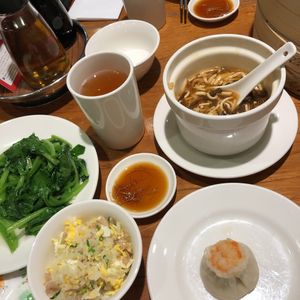 兎に角待ち時間が長いと色々なブログで読んでいましたが、事前にクーポンをゲットしておいて大正解でした。当日は雨にも関わらずかなりの大行列でしたが、事前に予約していたクーポンを係に渡したら、「相席でも良いですか?」と聞かれ、「ok」と返事したら数分も待たずに直ぐに案内して貰えて大助かりでした。確かにメニューは決まっていますが、メインの小籠包も含まれていて私達には十分でした。