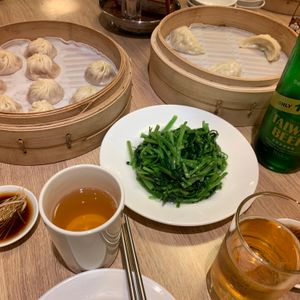 小籠包に空芯菜の炒め物、チャーハン、スープ、その他餃子など。