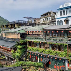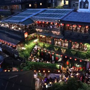 九份はとても混んでいましたが、お店の事前予約をしていたので並ばずに入店でき、テラスから人が少ない中で絶景を見ることができました。料理は正直微妙ですが、この景色のためにレストランを予約することはとても良い案だと思います。