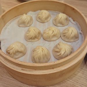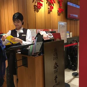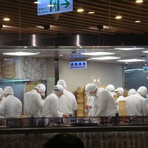 台北101店のお店を利用しました。午後5時少し過ぎにお店に。並んでいる列の横から予約印刷した紙を店員さんに見せたら店内へ即案内。すごくスピーディー。メニューを選ぶ煩わしさもなく料理を待つだけ。ガラス張りの厨房の中では10人ほどの料理人が小籠包?を一生懸命こねています。5分ほど待つと、料理が次々と出されます。蒸籠に入った小籠包はアツアツ。5種類ほどの小籠包はどれも絶品!蓮華に小籠包を乗せて、生姜の千切りを小籠包の上に。小籠包からはみ出る肉汁はあっさりしている。素晴らしい味に家内も私も舌鼓。小籠包を食べるために、日本から台北にわざわざ来たといっても過言ではない。午後6時頃には次から次にお客が入店。先ほどの厨房では何と20人ほどの料理人が必死に小籠包をこねて作っていました。さすが、超有名店‼