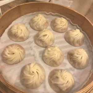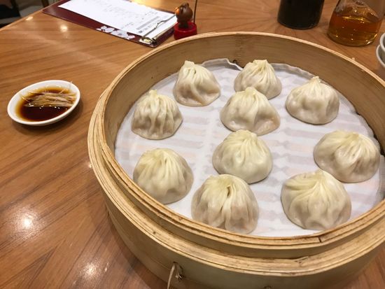 予約は19時、早めに着いてしまったので周辺を散策。日本のような居酒屋さんが結構あります。19時10分前に鼎泰豊本店前の店員さんにバウチャーを見せて整理券を貰いました。店頭の表示は待ち時間50分、店員さんが言うには25分待ち。でも店の前で待っていたら15分ほどで名前を呼ばれました。2階に行くと席が用意されいて、座るとさほど待たされずに小籠包登場!食べ方を説明してくれ、針生姜と酢と醤油でタレを作ってくれました。小籠包の蒸籠は次々にお兄さんが下から階段を登って運んで来ました。小籠包色々、サンラータン、チャーハン、デザートは餡子入り小籠包。コースだったので次々に出てきて、ちょっと忙しかったけど堪能しました。美味しかった〜、満腹。事前支払なので、伝票もなくご馳走さま〜と言って、出てきました。