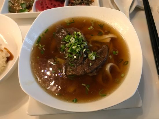正直、結構お高い牛肉麺をおしゃれなレストランで食べるんだと思っていました。ところが、コース料理になっていて飲み物やデザートまで付いていたのです。飲み物は恐らくコーラやアップルなどジュース系が選べるようですが、ビールをお願いしたところ、持って来てくれました。お会計時に多少銭?とお聞きしましが、料金は取られなかったです。恐らくビールなど頼む日本人はいないと思いますが、良くしてくれたんだと思います。私たちは平日の12時に行きましたが、人気店のようで混雑していました。誕生日で食べている台湾の方もいたので、贅沢なお店なのでしょう。店員さんもキチンとしており、英語での対応を行ってくれました。さて、かんじんのお味ですが、うるさい日本人にはどうかと思いますが、台湾料理として味わってみる価値はあると思います。最後のデザート以外の料理の画像を載せます。