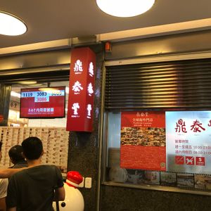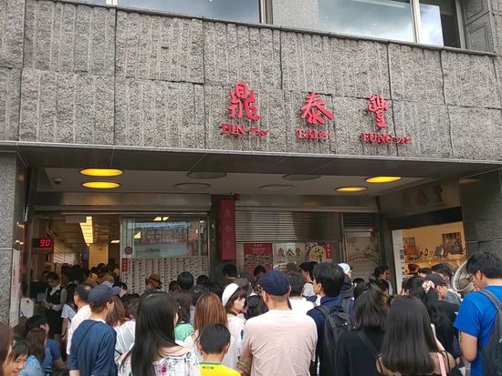 夏休みの月曜日昼12時半の予約でした。50~60分待ちのところ、バウチャーを渡すと20分と言われ、15分で入れました。掲示板に番号が出てますが、この予約は番号でなく名前を呼ばれたので、すぐ近くに待ってました。娘はその間2軒ほど隣のバターケーキ(太陽餅)屋さんで試食をいただき、美味しいと言ってお土産に買ってました。2階でゆっくり2人席で食べ、コースになってるのでいろいろ食べられ良かったです。一番食べたい小龍包は2人で10個入りが来るし、他は気の毒になるくらい大きなせいろに2個ずつ(1人1個)あつあつで5~6種類来るので私には量もちょうどよかったです。卵チャーハンと自分では頼まなかったであろう酸辣湯(意外にそこまで酸っぱすぎず美味しかった)もついてました。前の日にも、日本人にも人気という違う店で小龍包を食べましたが、さすがの鼎泰豊、皮も薄く、わたしはこちらがより好みで美味でした。足りなければ追加で注文できるし、もう一度行っても、時間が節約でき確実なので頼みたいと思います。