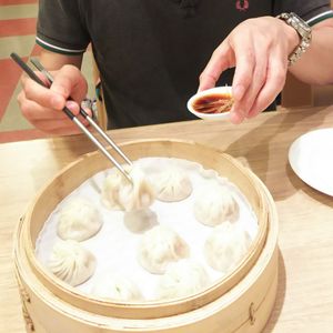 待ち時間がすごいと聞いて、事前予約しました。お店の中はほどんどが日本人で、お店に着くと35分待ちの掲示がででいましたが、日本語で受付すると15分したら呼びますと言われ、15分たたないうちに呼ばれ3階に行ってくださいと。細い階段を上がっていくとすぐ席に案内してくれた。今回ツアーのお昼食に他店の小籠包がついていましたが、鼎泰豊(ディンタイフォン)の小籠包の方が断然美味しかった。料理の内容は決まってますがいろいろな種類の小籠包が食べられるので私としては予約してよかった。卵チャーハンはとても美味くで残さず食べてしまほど。スープもデザートの餡の小籠包もおいしい。ウーロン茶も飲み放題。もう何も入らないほど満足。お店はとてもきれいで、驚いたのはトイレに専属清掃の方がいて使用ごとにきれいに使えるよう拭いてくれていました。次回は違う種類にも挑戦したいな。
