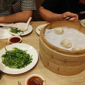店の前はとても混み合っていましたが、優先入場できたので、待ち時間は5分でした。食事はとても美味しくて、単品で注文するよりも割安でした。お料理が次々と運ばれてきてしまい、小籠包の皮が硬くなってしまったものもありました。お客の食べる速度などの様子を配慮して欲しかったですが、、人気店なので仕方がないのでしょうね。