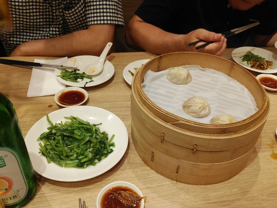 夕方の早い時間(17:30)の利用でしたが待ち時間は30分の表示があり店外にはかなりの人が並んでいました。バウチャーを見せると5分ほどですぐにテーブルに案内されました。料理は決まったコースとなりますが男性の大人4人でも十分満足できるボリュームでした。小籠包は1人5個づつと満足できました。店員も仕事をてきぱきこなし、日本語もほとんど通じました。ただ、残念だったのは同じフロアに日本人の大学生ゼミと思われる団体が15人ほどいて、男子が女子に掛け声をかけてお酒をイッキ飲みさせるは、他の客の迷惑も考えず大騒ぎしており、日本人として少し恥ずかしくなり食べたらすぐに店を出ました。「旅の恥はかき捨て」では現地の人もそうですが、他の日本人も迷惑です。