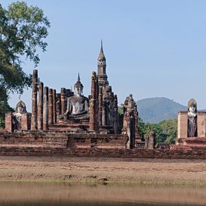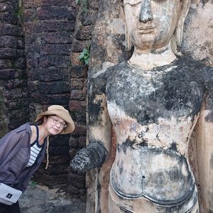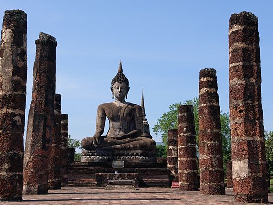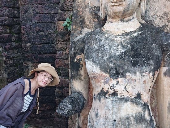 我々(私と妻)は世界遺産や遺跡が好きなので、今回のタイ旅行のメインと考えていましたが、あまりにも観光客が少なくて拍子抜けしました。実際に同行してもらったガイドさんも、「スコータイは需要が少ないので事務所がなく、チェンマイから来た」と言っていましたが、非常に見どころのおおい遺跡群でした。まず、アユタヤ遺跡と比較すると仏像の頭がちゃんと残っていて、かつ大きいので、見ていて迫力があります。アユタヤ遺跡も大きいものはあるのですが、尖塔ばかりで立像好きの私としてはあんまり楽しめませんでした。また、日本の仏像と比較すると顔が非常に人間らしく穏やかで、体の線も細身で曲線を中心としており、より人間に近い感じで興味深いです。遺跡好きでなくても、他の観光客がほとんど立ち寄らない場所なので、行ってみる価値はありますよ。
