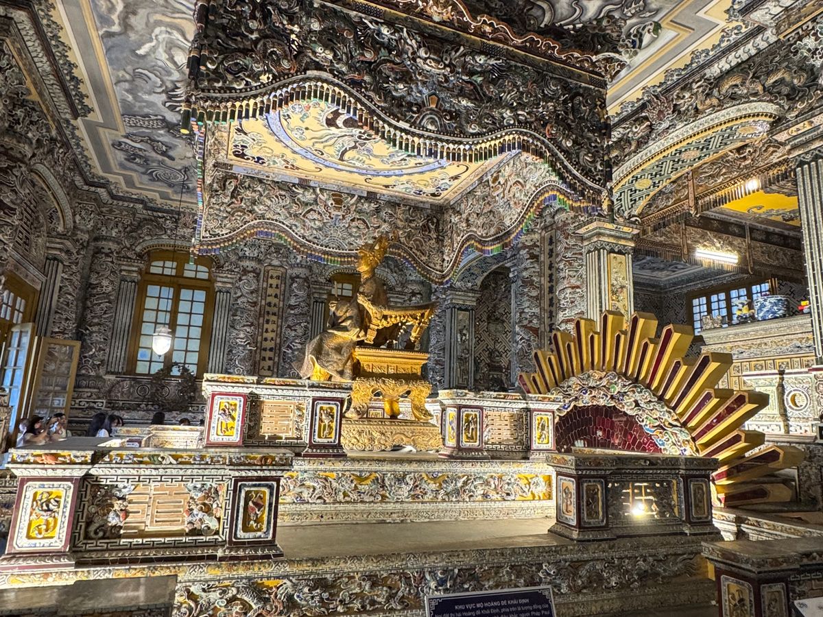 朝7:30にホテルを出発。今回は私たちだけの参加だったので貸切状態でラッキーでした。2時間のタクシーの移動中、ガイドのチンさんからベトナムの歴史についてとても詳しく聴きました。フエに到着すると、カイディン帝陵、ティエンム寺、線香村をまわり、ランチへ。ランチはカジュアルコースで7品出ました。内容は予定より少し変更されていたけど雰囲気も味も良かった。その後グエン朝王宮を、各代の王様の功績や生涯、フランスとの関係やベトナム戦争の際の話しなどを聞きながらたっぷり見学。この時点で14時過ぎでそれからダナンに戻り五行山に16:30到着。洞窟の中にある石仏や、大理石の仏像などを見ながら山頂(といっても大きな岩のてっぺん)に登り、海岸線を見下ろす景色は抜群。その後スーパーマーケットでお土産を購入し、ダナン教会で記念撮影後に夕食へ。こちらの夕食もローカルフードのメニューを3品出されましたが、どれもとても美味しい。大手のツアーをはじめ、オプショナルツアーも色々体験したけど、今までで一番美味しかったと思います。ホテル到着は20時と、12時間以上のツアーとなりました。