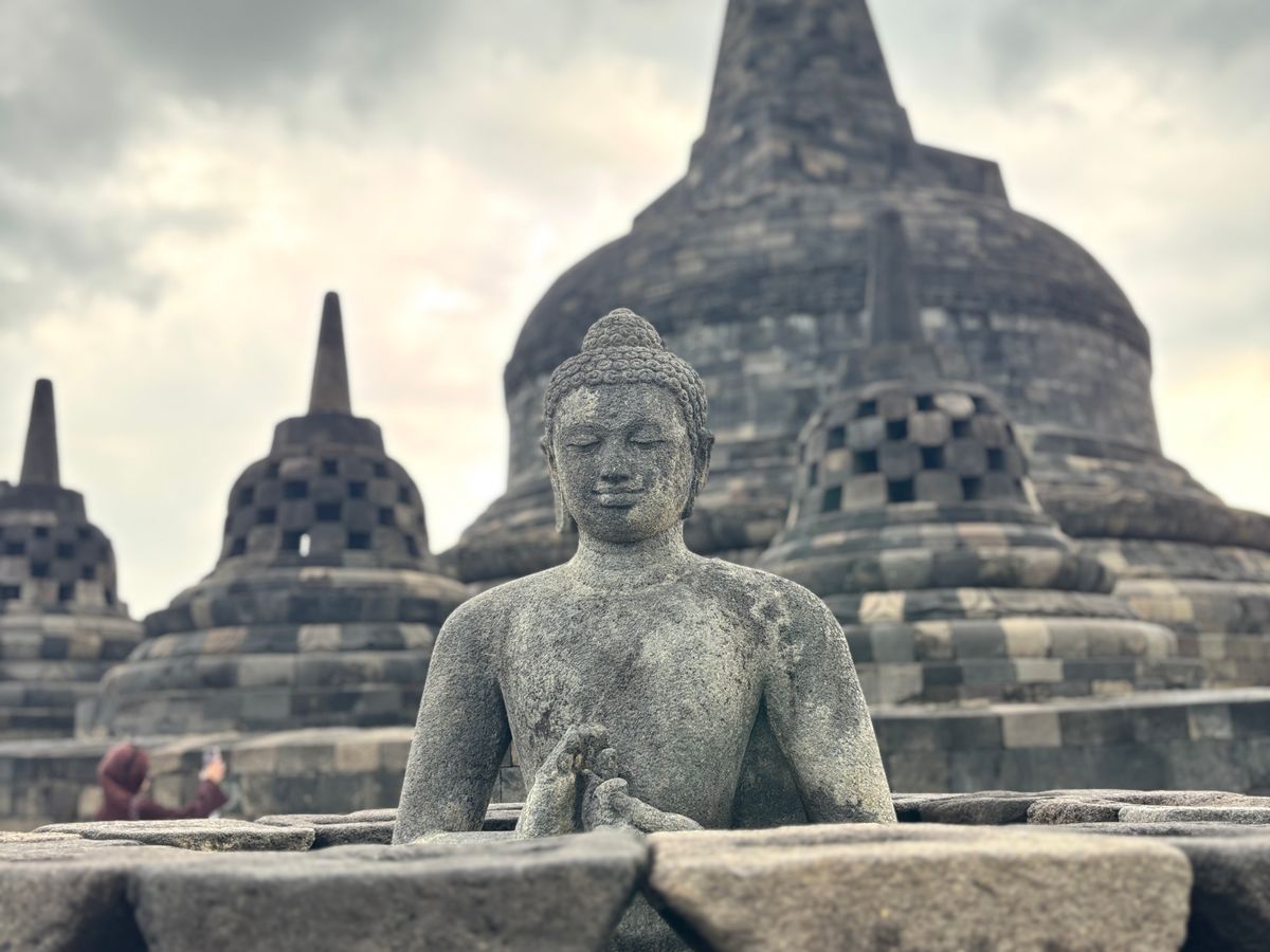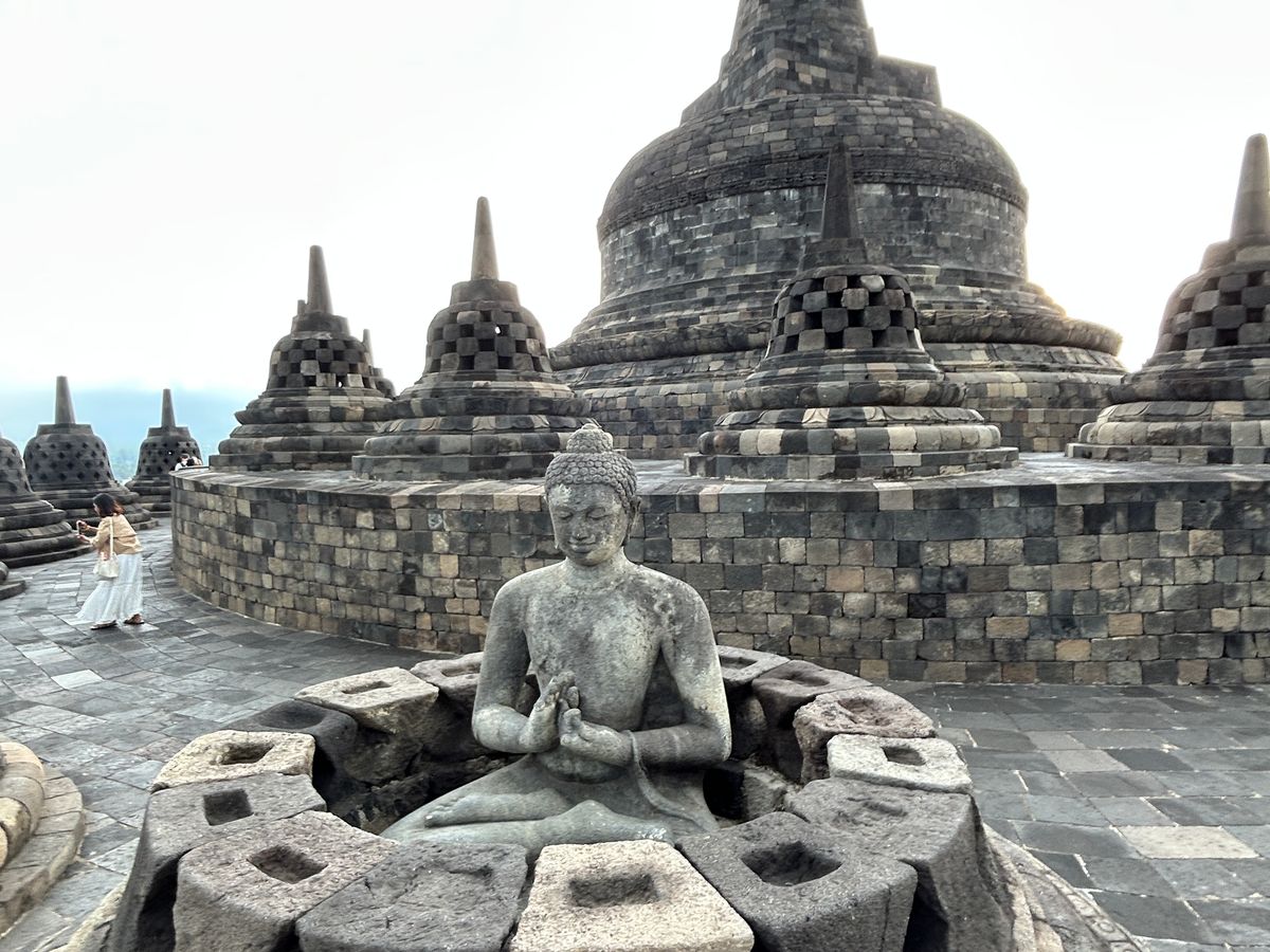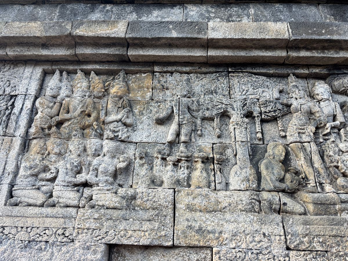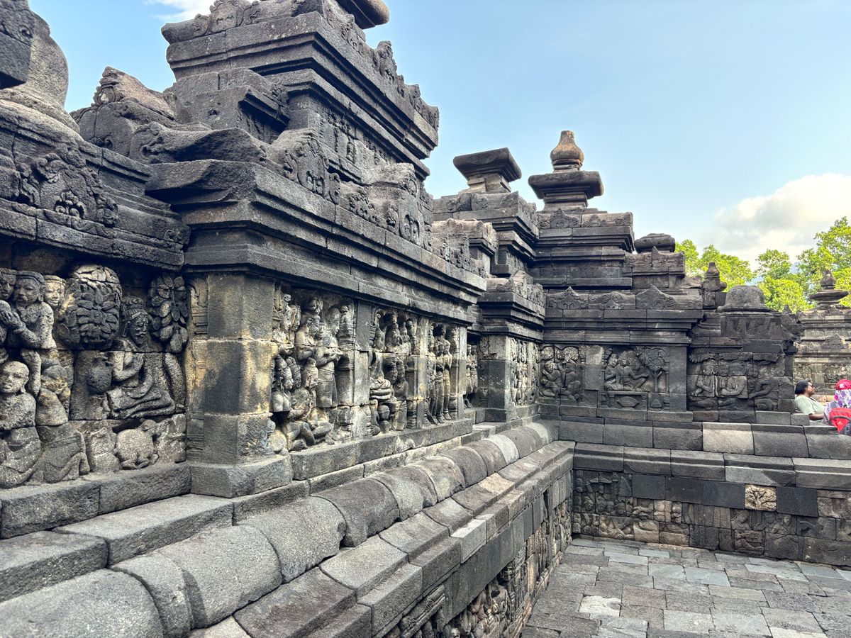 長い間埋もれていて、発掘後に修復された遺跡ですが、レリーフやストゥーパもそのままの形で残っており、仏教の立体曼荼羅の世界を体験できます。