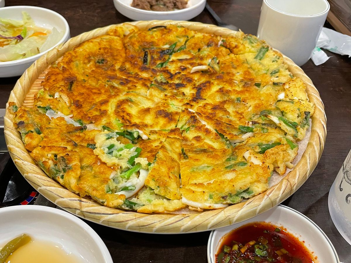 昼食のプルコギは感激する位とても美味しく、ネギチヂミはピザみたいに大きく美味し