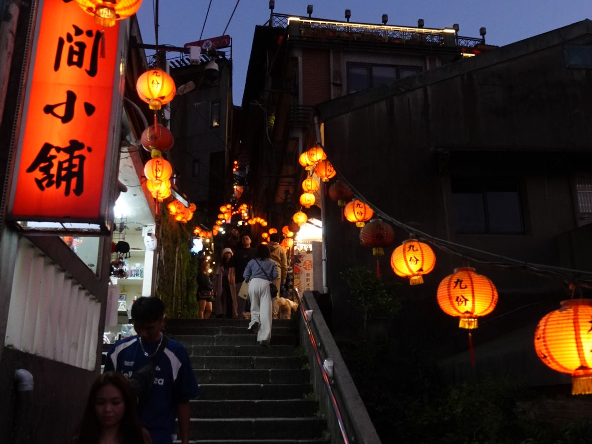 夕暮れから夜の時間帯は、九份らしい提灯(ランタン?)が鮮やかな街並みをゆっくり楽しもうと思っていましたが、小路まで観光客がいっぱいで、同行者とはぐれないように歩くのに気をつかいました。