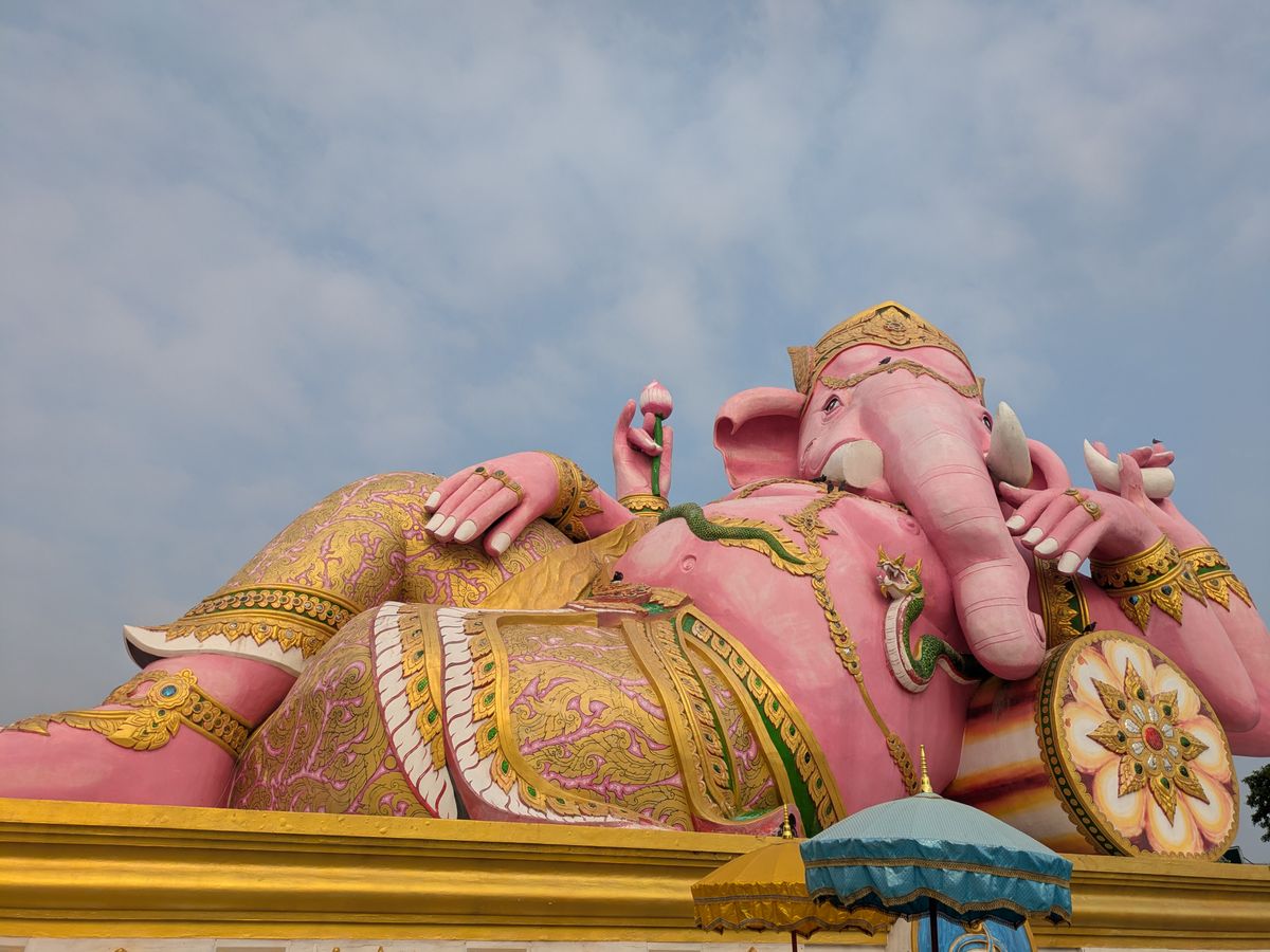 ワゴン貸切チャーター観光ツアーで10時間でお願いして、ピンクガネーシャとアユタヤ観光、象乗り体験をお願いしました。