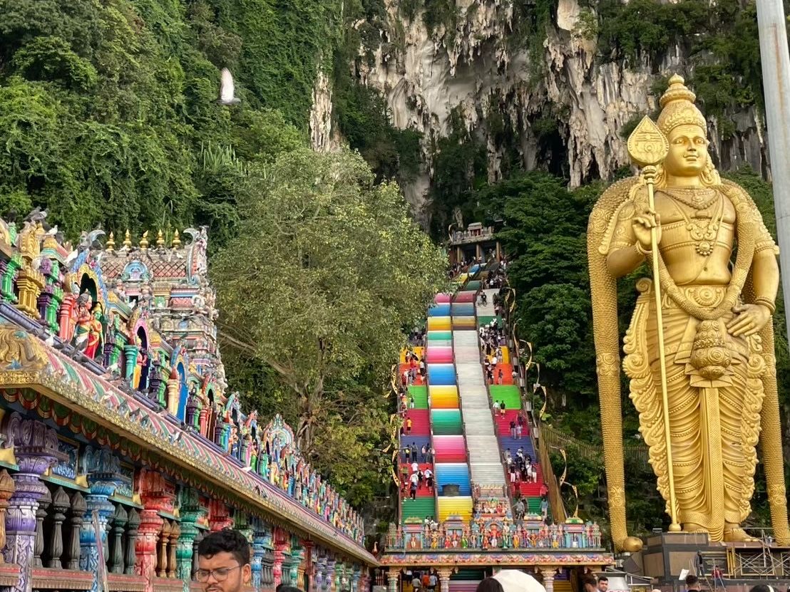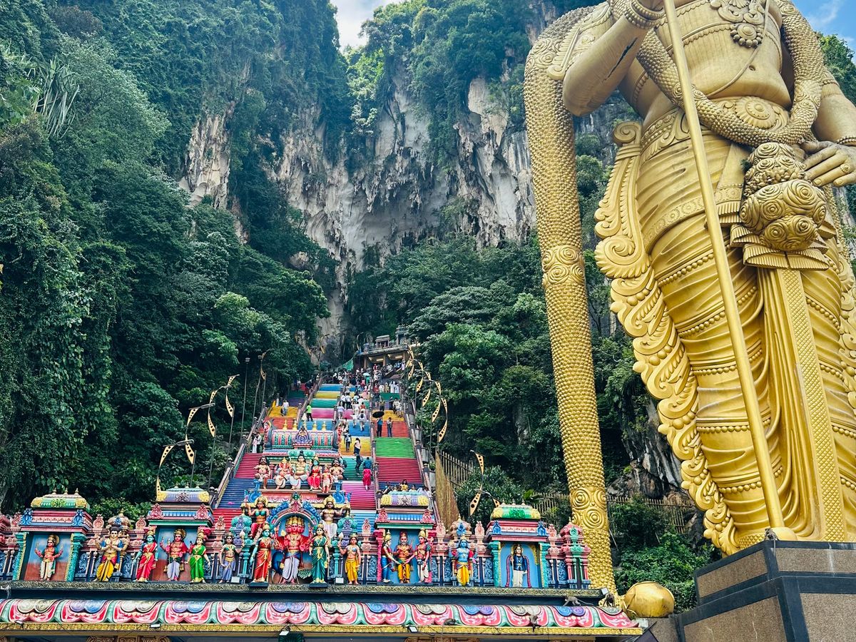 バトゥ洞窟は上まで急な階段を結構登ります。時期によっては熱中症のリスクがあるので水分、帽子、汗拭きシートなど持って行った方がいいです。