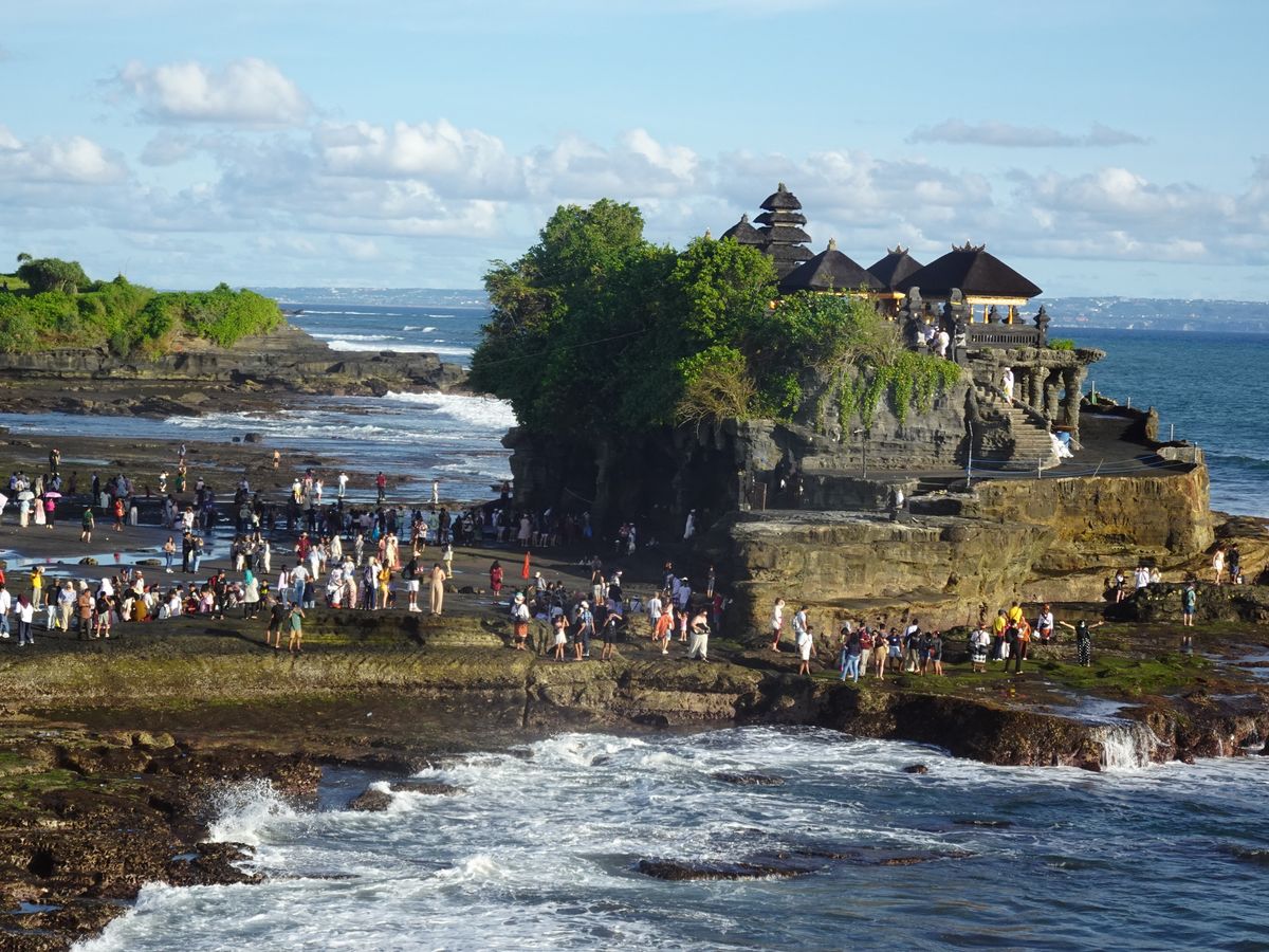 タナロット寺院には予定より早く到着したので、駐車場から海岸や寺院のそばまで散策ができて、沈む夕陽をしばらく鑑賞することができました。