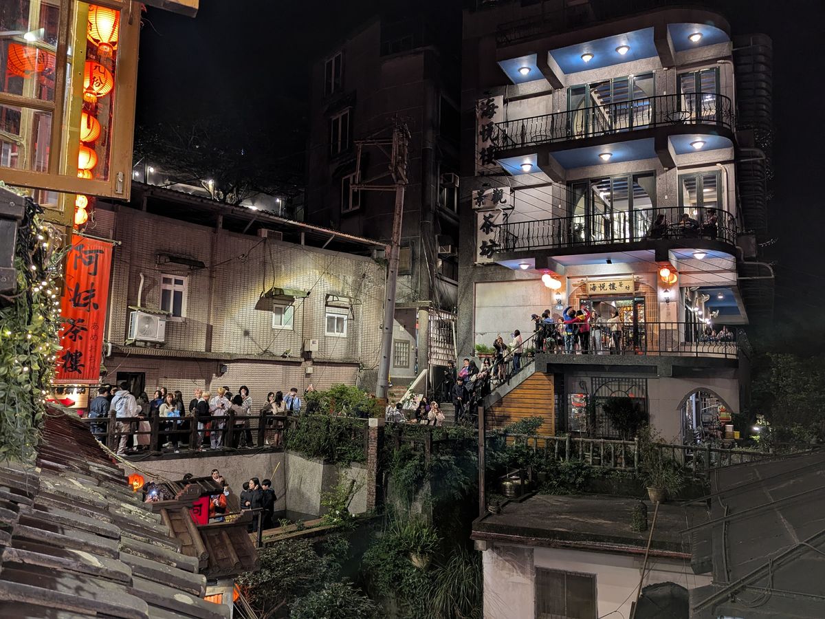 九份は日の入り時刻が近づいてくると尋常じゃない人が集まり、行きたいところや撮りたいスポットも大混雑で、階段を上るのも下るのも困難な状況となります。