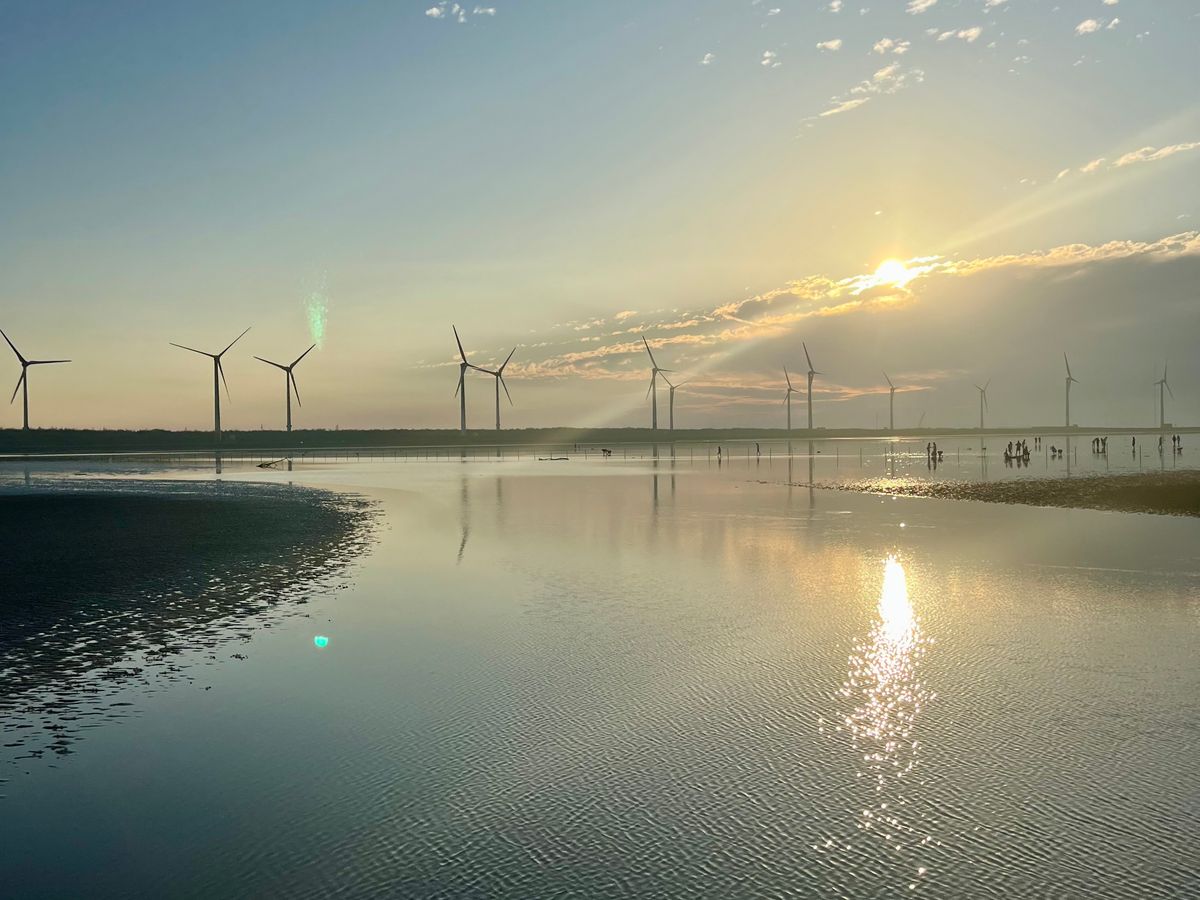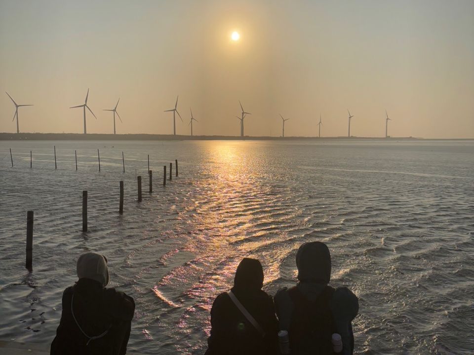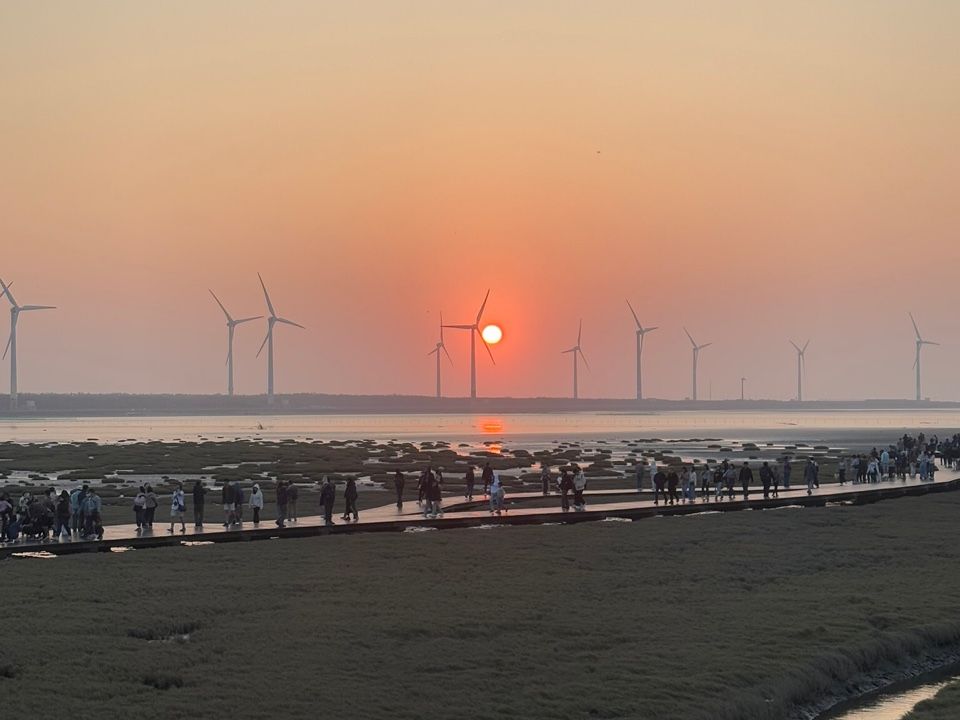 高美湿地はかなり風が強いので海に落ちないように気をつけてください。