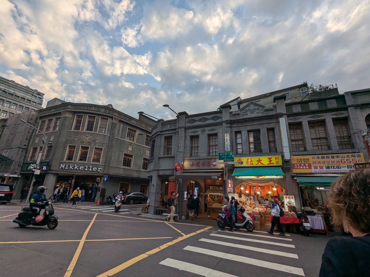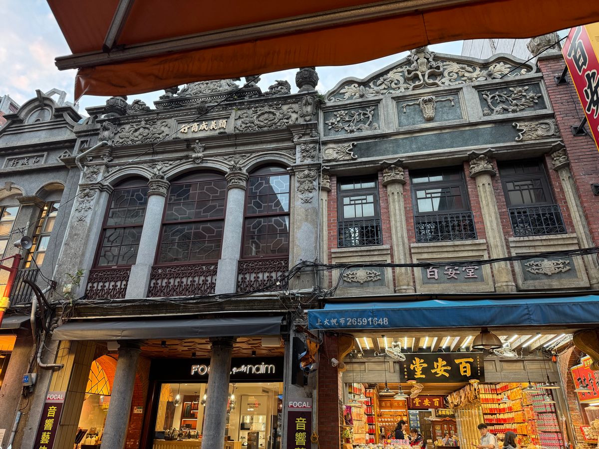 迪化街の建物のファサードについて紹介いただいたり、ガイドさんのおすすめのヘチマと蛤の炒め物を楽しみました。