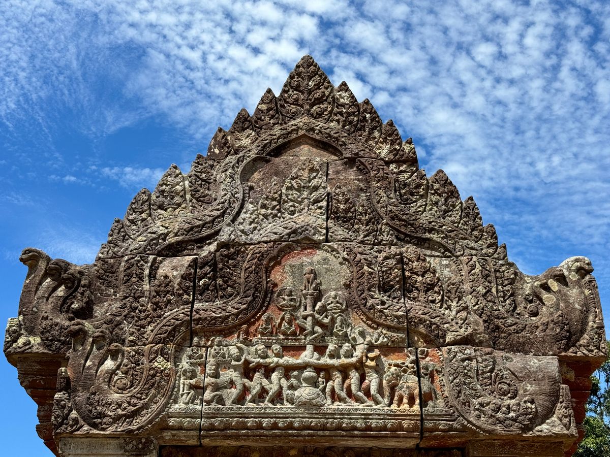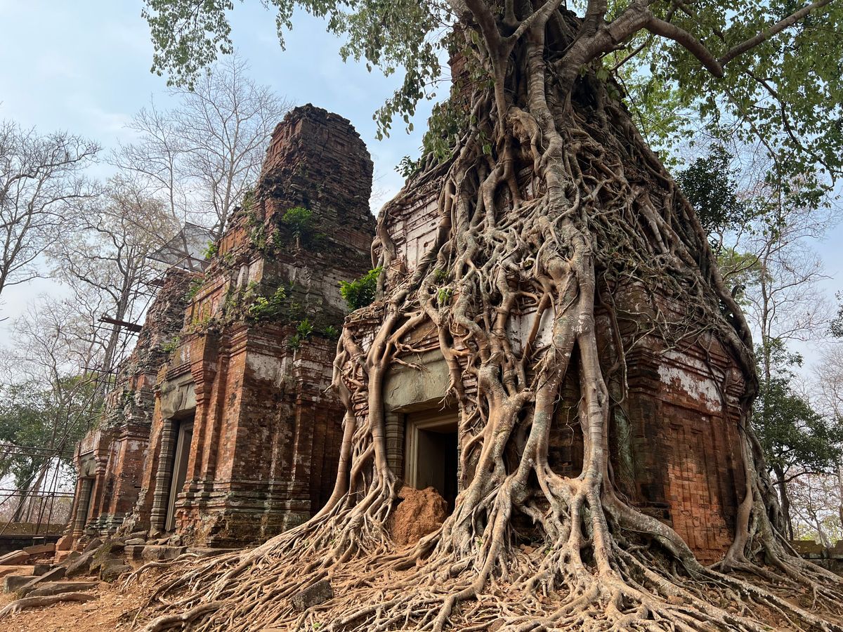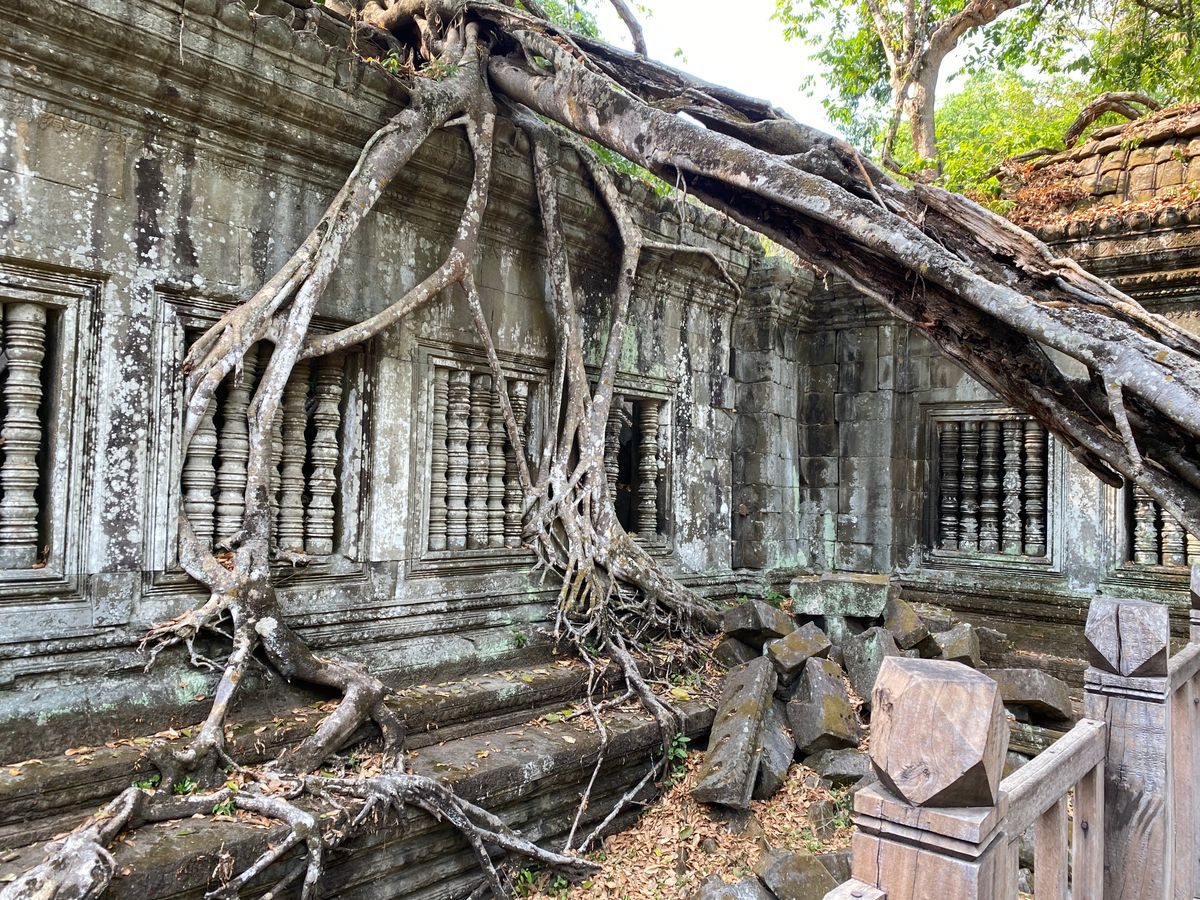 ガイドブックに載ってたベンメリアのナーガ像はなんと倒れてしまってありませんでした。崩れ落ちそうな石に木のつっかい棒で気持ち程度補強しているところもあり、ガイドさんによると、どんどん破壊が進んでいるそうです。今回見た遺跡が数年後変わってるんだなと思うと感慨深かったです。バンテアイスレイは小さくて美しく、最も印象に残りました。観光客が比較的少ないのもいいです。