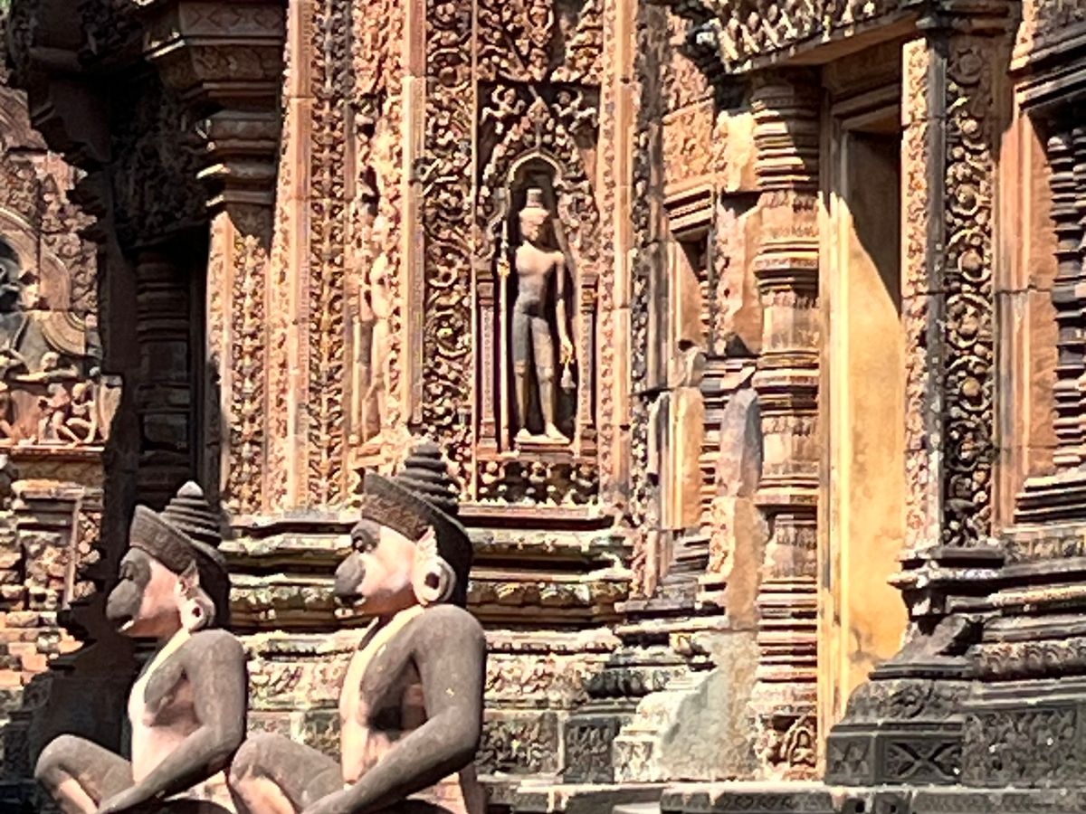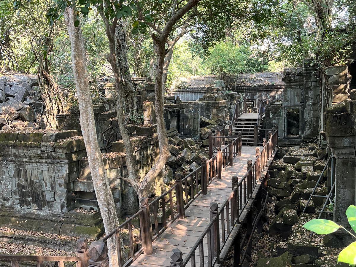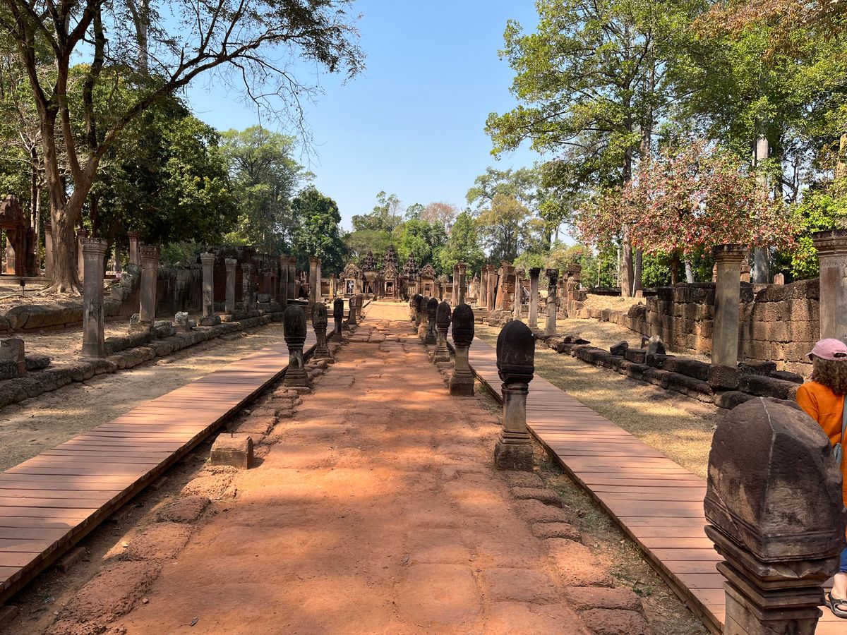 バンテアイアスレイ遺跡は、それまで観てきた遺跡に比べると、赤みがあり、彫刻もくっきり細かくて繊細で素敵でした。こちらは歩道のおかげで、遺跡、特に東洋のモナリザまで思ったより遠かったです。