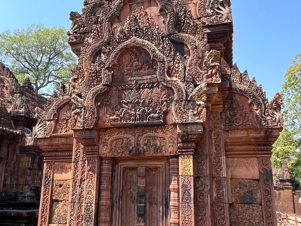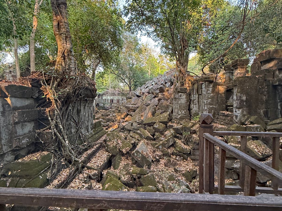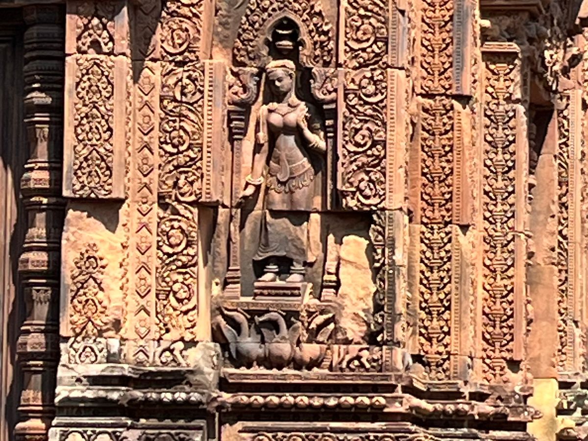 バンテアイアスレイ遺跡は、それまで観てきた遺跡に比べると、赤みがあり、彫刻もくっきり細かくて繊細で素敵でした。こちらは歩道のおかげで、遺跡、特に東洋のモナリザまで思ったより遠かったです。