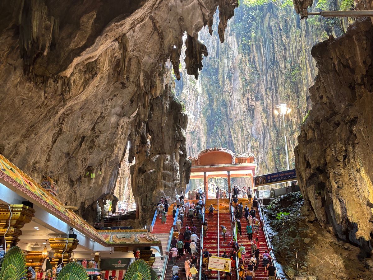 ホテルにガイドさんが来てくれ、ゆっくり見学することができました。バトゥ洞窟を上ったのですが、階段手前で多くの鳩がいて、階段ではサルがいてそれらの障害をよけながら行きました。私たちは問題なく登れましたが、ある観光客はサルに何かをとられたようでした。
