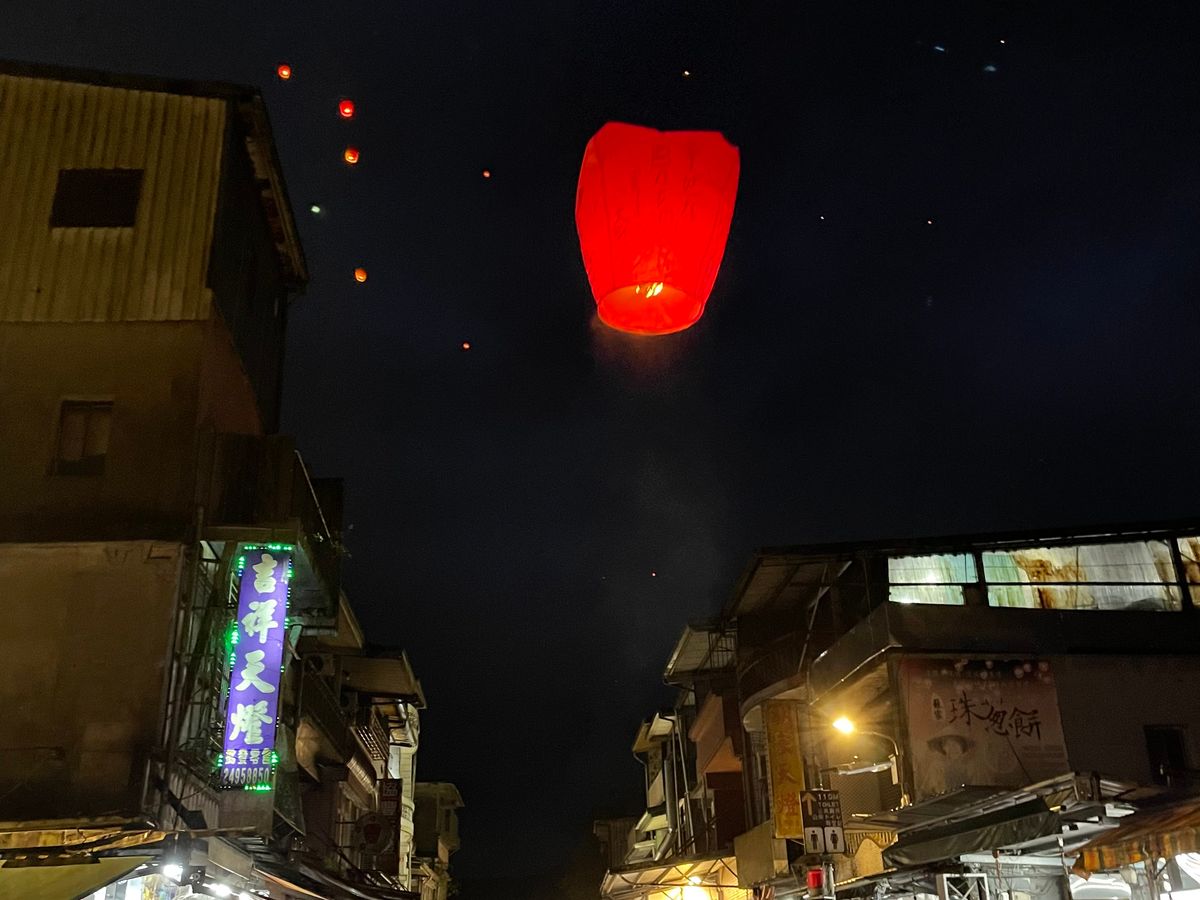 ガイドの朱さんの判断で十分からの九份へ変更となりましたが、これが大正解でした。タイミング良く雨が上がり、濡れずに天燈上げが出来ました。思っていた以上に空高く天燈が上り、とても幻想的でした。