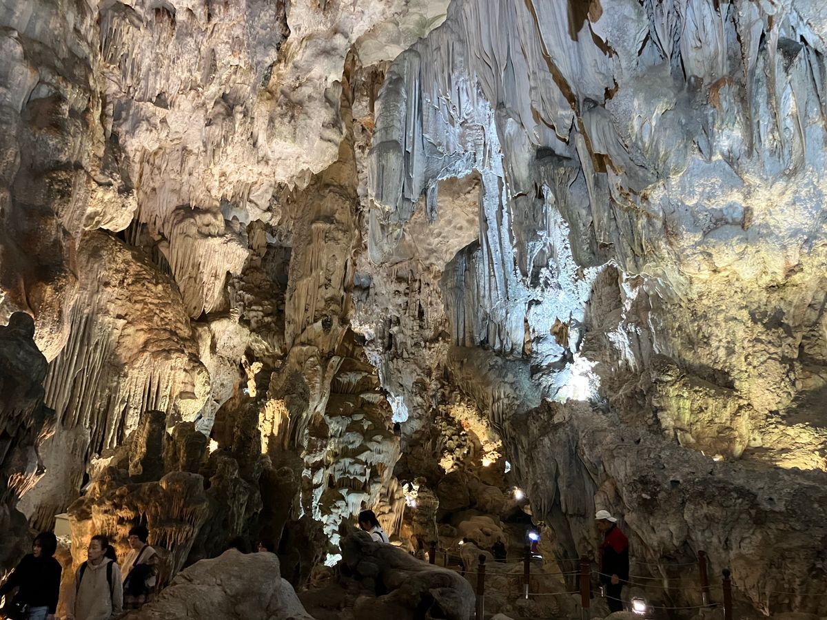 ホテルでゆっくり朝食して9:00出発、高速で港まで行き乗船。船から奇岩をじっくり見ながら島に到着、上陸して鍾乳洞もじっくり見ます。