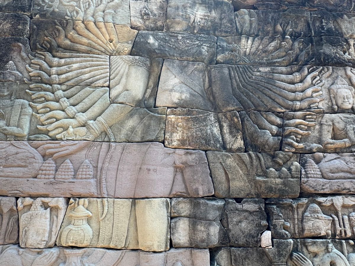 アンコールトムは小回りコースで見学したのだと思いますが、予習してあった私でも、どこを回っているのか、あとで復習して良くわかったくらいなので、夫は何を見てるのかちんぷんかんぷんだったようです(笑)説明は、さすがベテランガイドさんだったので、とても詳しくしていただきました。が、説明が長すぎなのと暑すぎて、途中から早めに切り上げてほしい気分でした😆