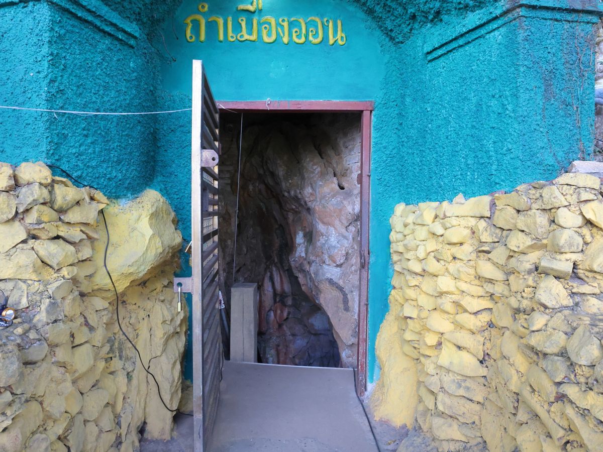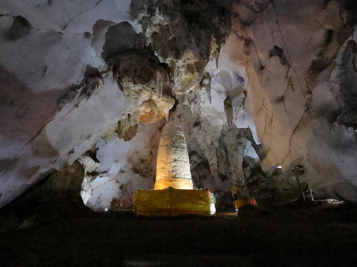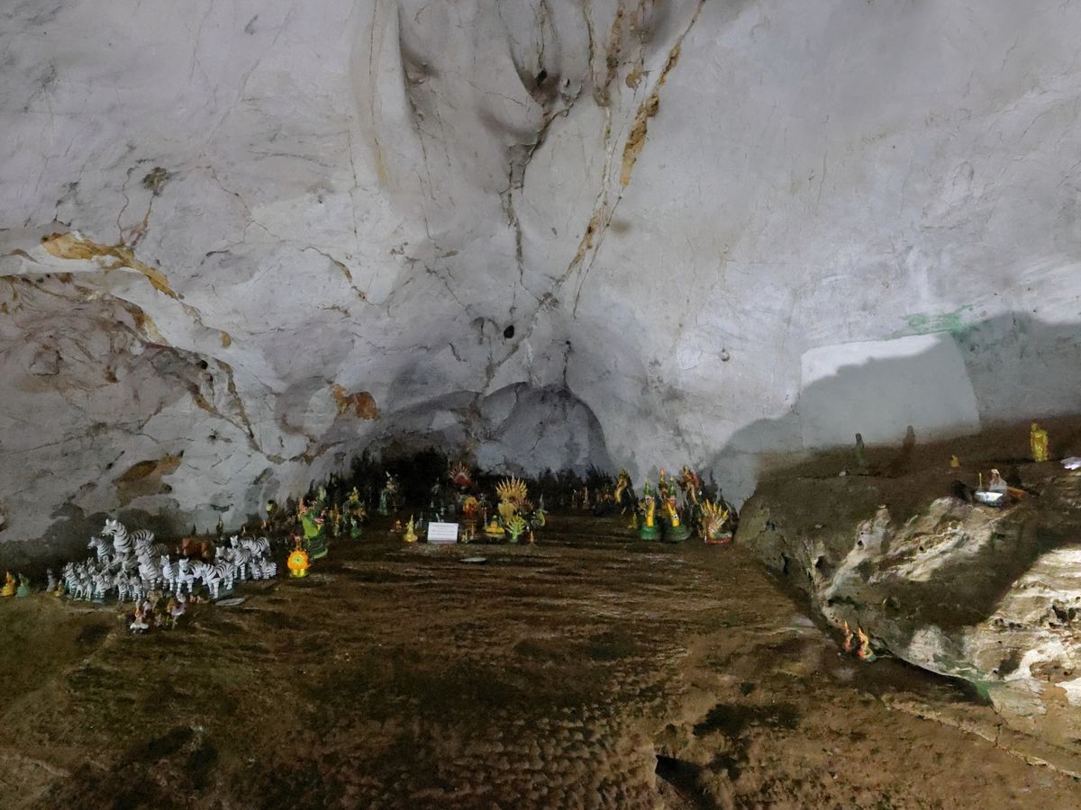 きつい階段を登り切ったら入り口がありました。中は広く大きな石筍、鍾乳石、仏像など見どころは沢山あります。