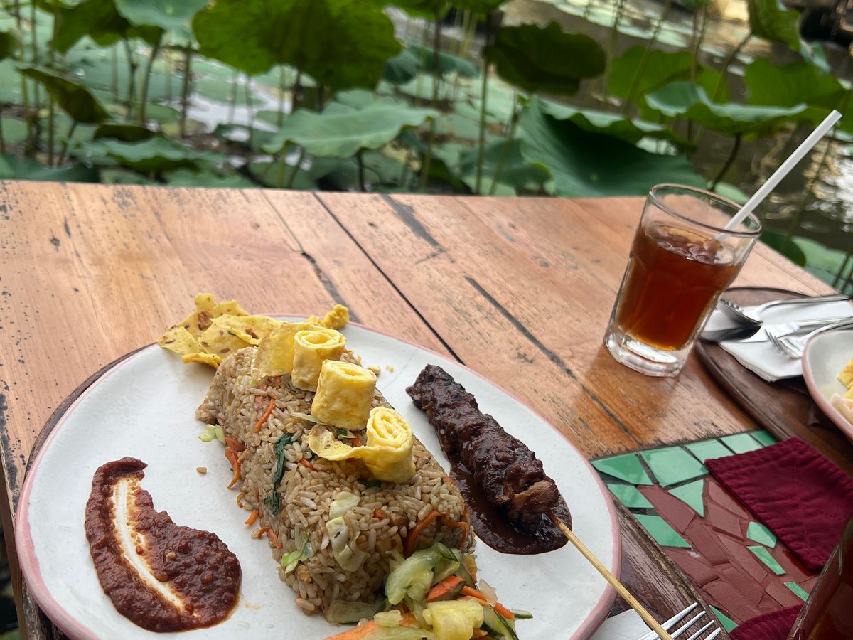 席は屋根のある外の席を選びましたが、雨季特有の強風と急なスコールがあり、急いで食べました。