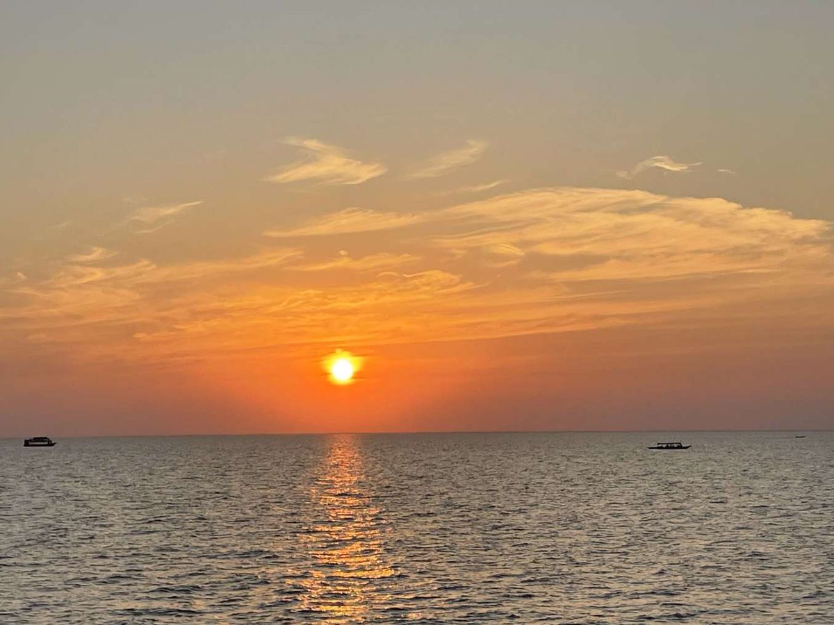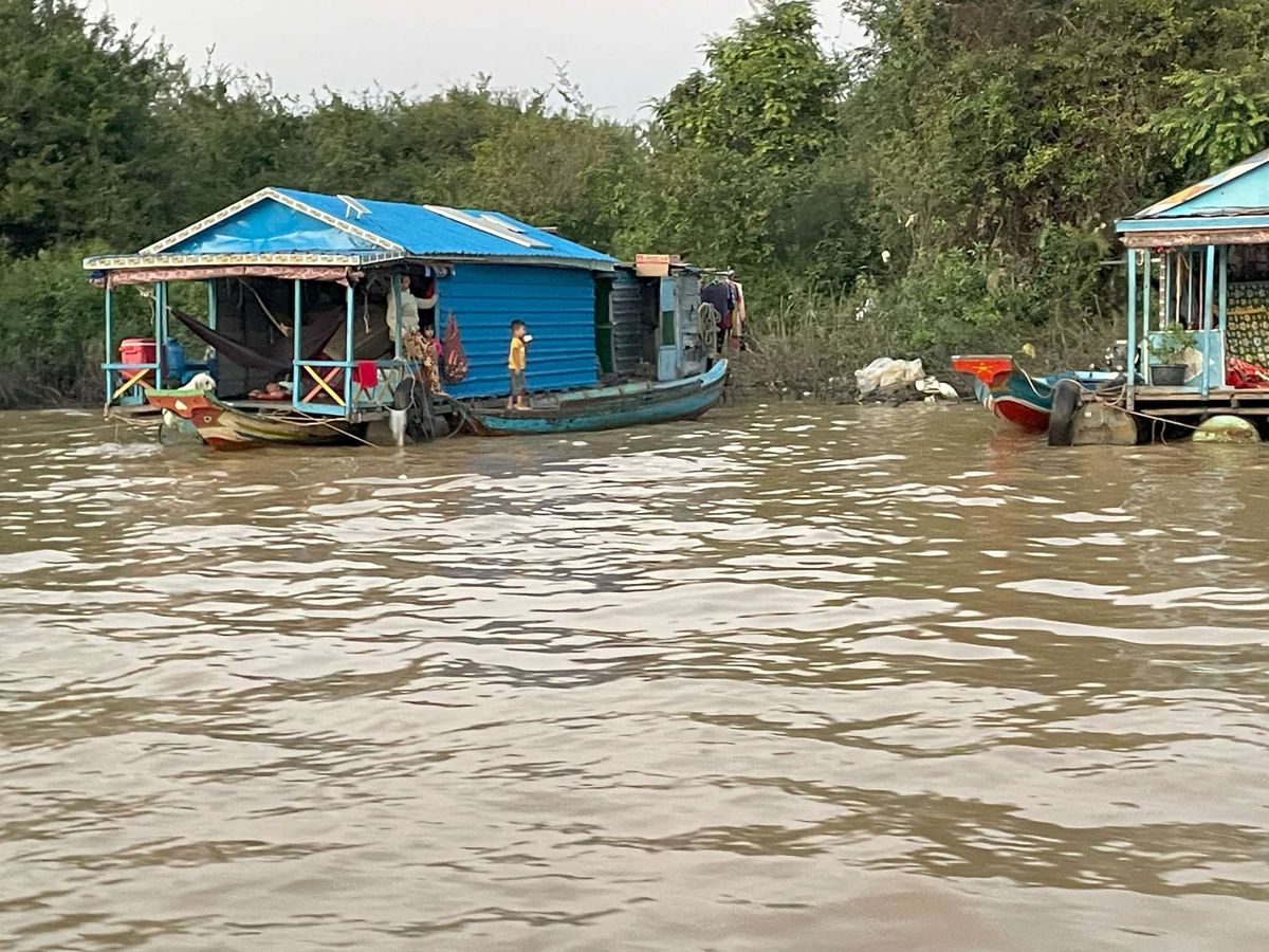 トンレサップ湖が雨季と乾季で水位が10mほども変化することから、漁業を営む人々が水面に浮く家屋で水上生活をしている。見慣れない風景に興味をおぼえるとともに、水平線に沈む夕陽は良い思い出となった。