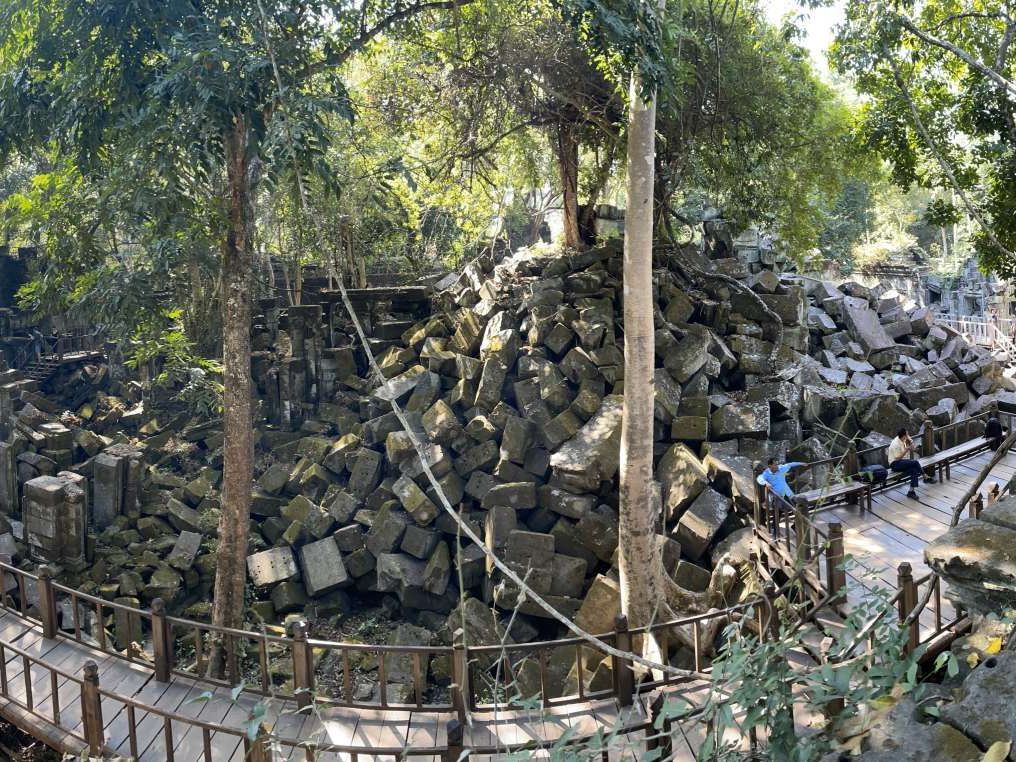ベンメリアの遺跡はアンコールワットほど壮大ではない。しかし、修復されず、栄華を誇った文化が長い時間の中で忘れ去られた歴史を感じさせられた。崩れ落ちた遺跡に大木が根をからめている姿が、「天空の城ラピュタ」を連想させることから、訪れる人も多いそうだ。