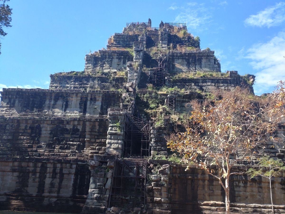 コーケーのピラミッドが上るのに疲れるほど大きい。上りやすく安全な階段はあったが途中で休憩が必要だった。