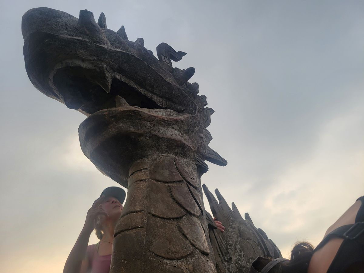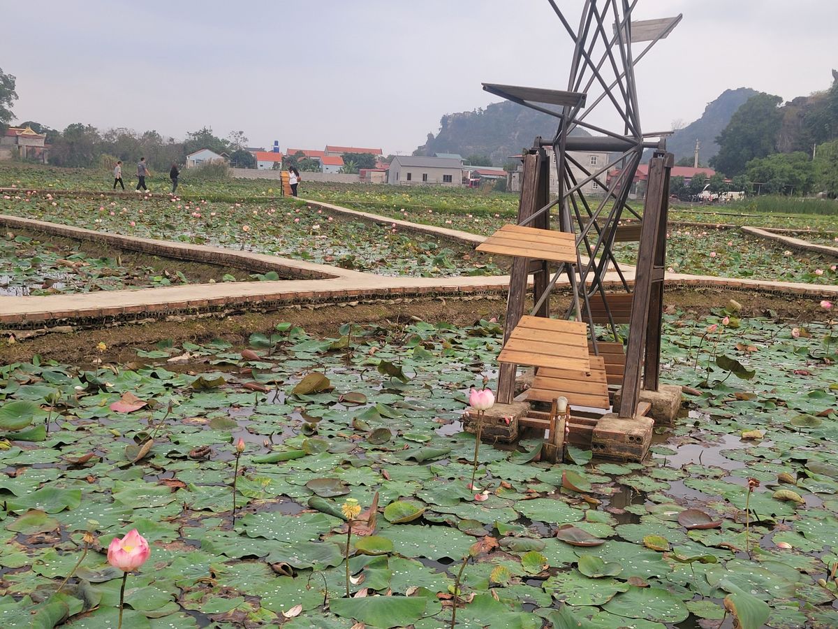 こちらは洞窟とはいうももの、500段の狭い階段を上っていくとチャンアンの風景が素晴らしく望めます。ガイドさんは途中まで行ってくれましたが、頂上までは友人二人と登りました。とにかく頂上は人も多く、急で危険ではありましたが、龍の頭を触ることができて、満足です。ふもとには一面の水連が咲き乱れ、きれいな写真も撮れました。この辺りはリゾート地のような感じに思えました。
