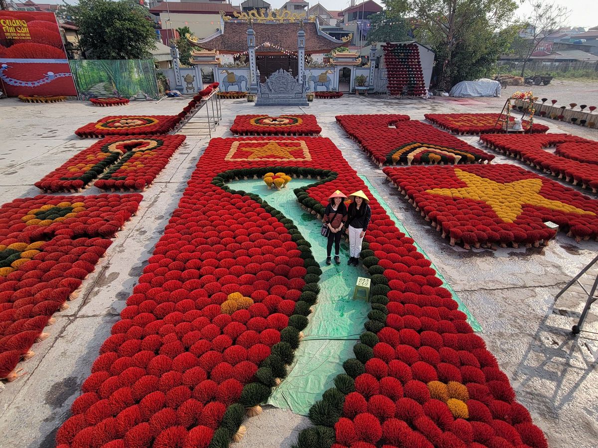 では、ベトナムの線香を作っている様子を見ることができて、日本のお線香とはちょっと違っていて、見学は楽しかったです。色鮮やかな写真をガイドの方がたくさん撮ってくれました。