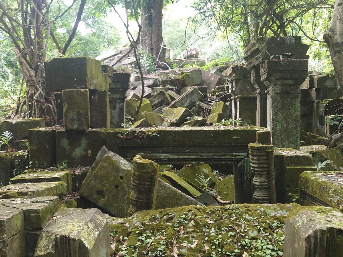 その後、ホテルで休憩かオールドマーケットでマッサージなどと言われたのですが、次女がバテ気味だったためホテルで仮眠をとり、午後はベンメリアへ。ラピュタの元になった?遺跡で、静寂の世界でした。アンコールワットも遺跡ですが人がたくさんいるせいかにぎやかな印象でしたが、ベンメリアは廃墟。苔のせいかもう自然に還っていくところだなと感じました。