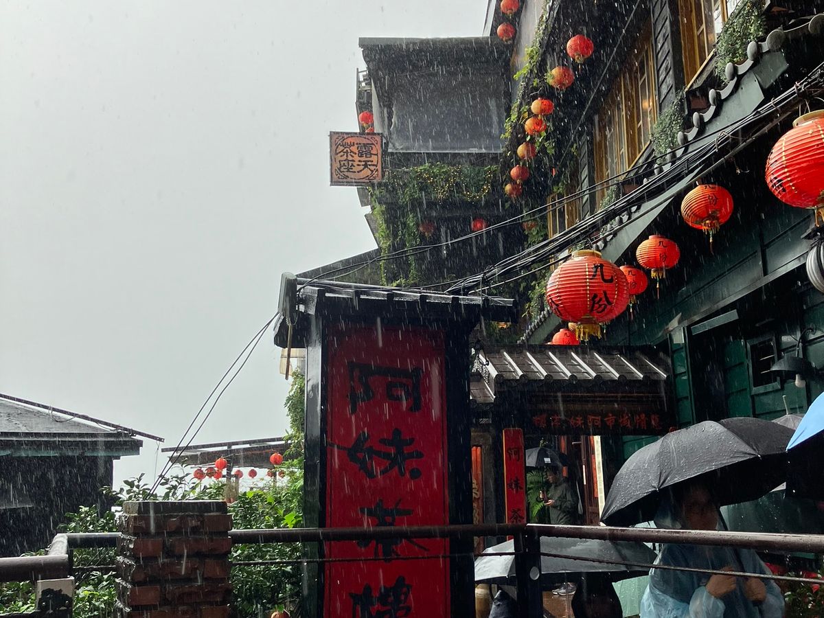 九份到着時はひどい土砂降りとなっており階段が多いこともあってカッパと防水の靴を準備して行くのがいいかと思います。