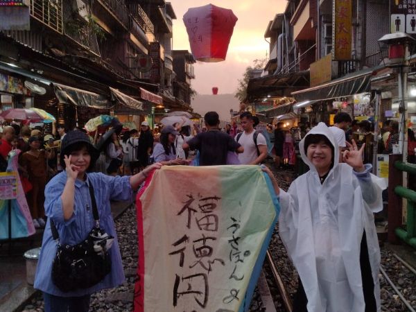 十分では線路でのランタン上げ、豪雨に見舞われながらも、願い事を描いたランタンをあげることが出来て、ダブルレインボーまで現れる幸運に出会い、絶対に願いは叶うに違いありません